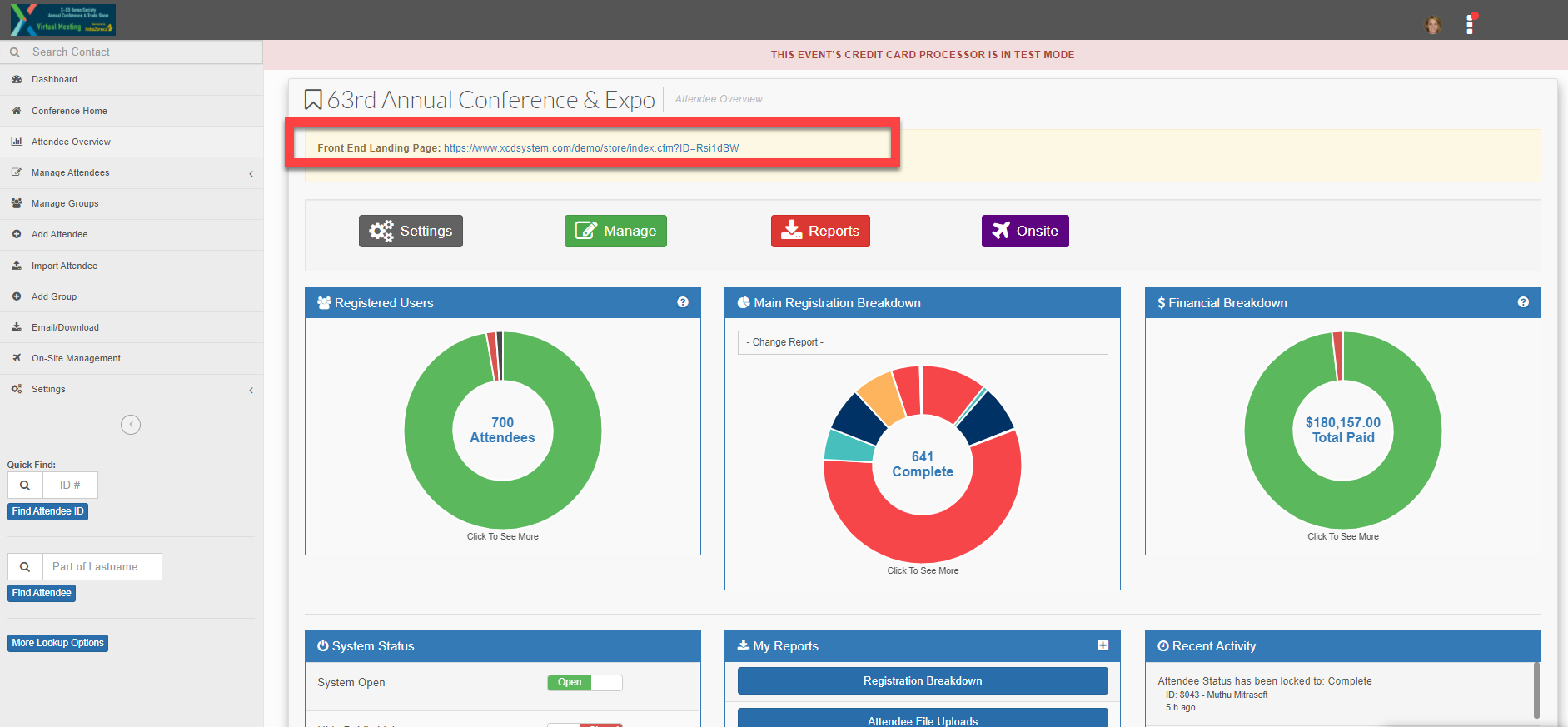 - Total number of all registered attendees (regardless of payment status) appears inside the circle