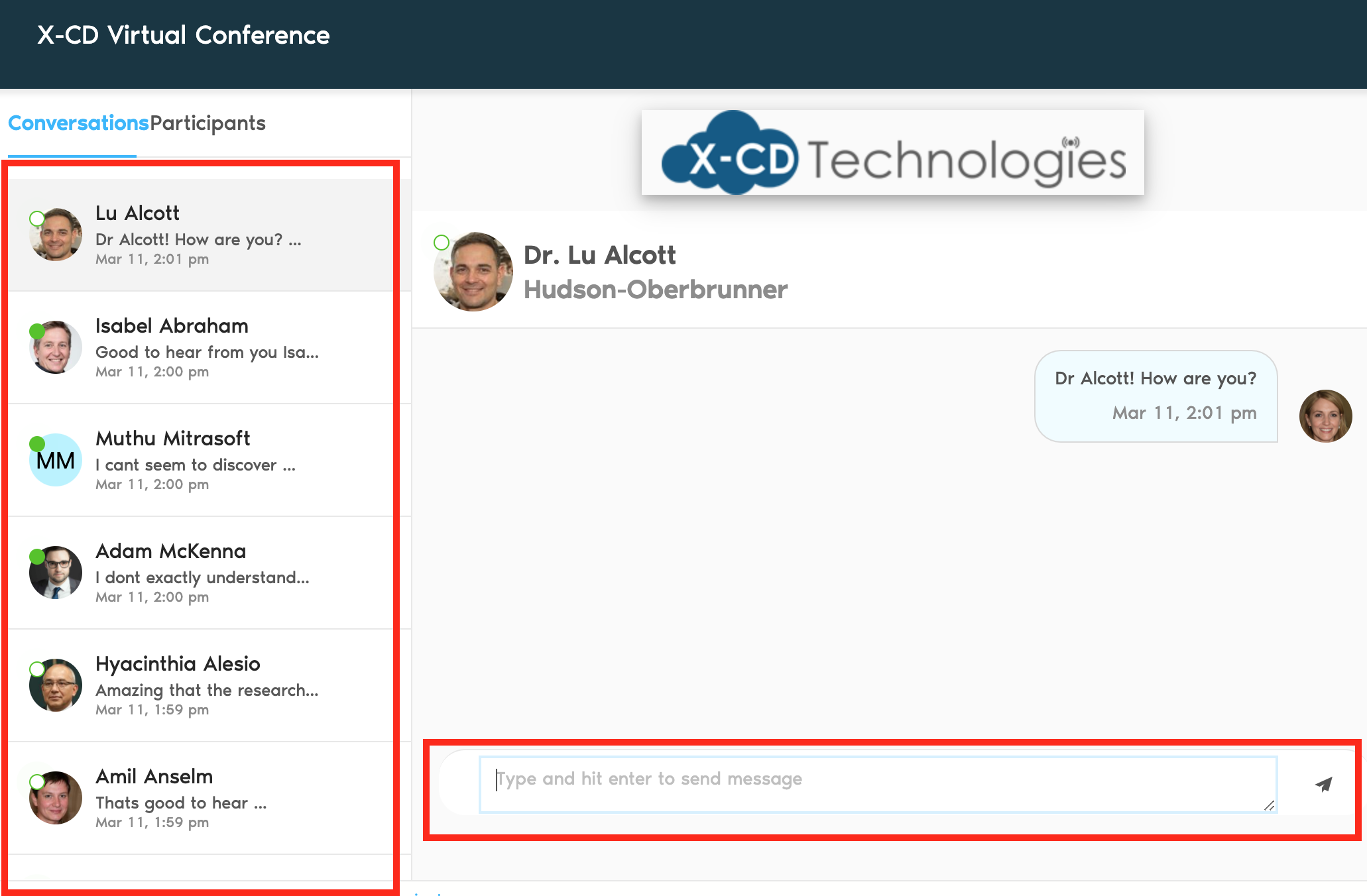 - Search from the participants screen to start a chat with a conference attendee/delegate.