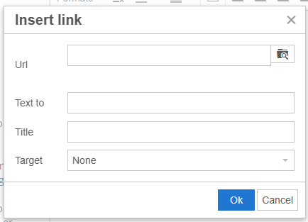 - In Text to display field, provide text for the url (other than the address itself) or leave blank