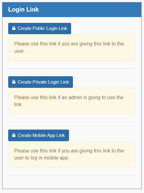 - On the left-hand side in the Login Link Panel click Create Mobile App Link