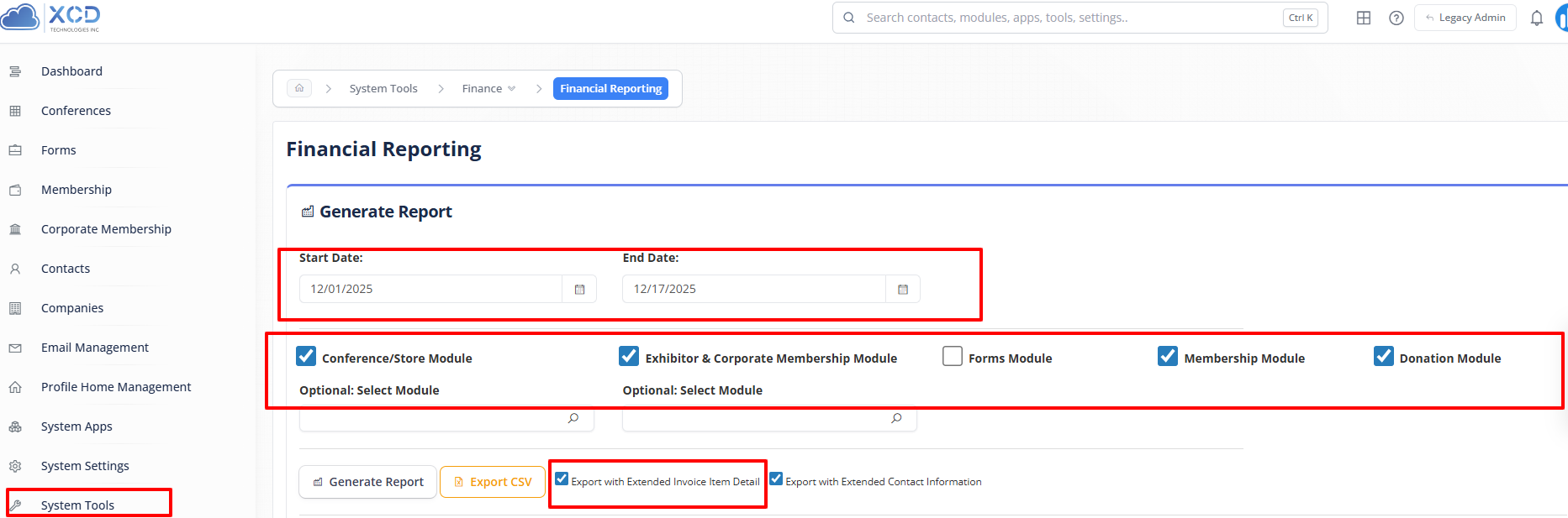 - We suggest you try to run the report with the Export with Extended Invoice Item Detail' box checked and unchecked. Your reconciliation process may prefer one download style over the other.