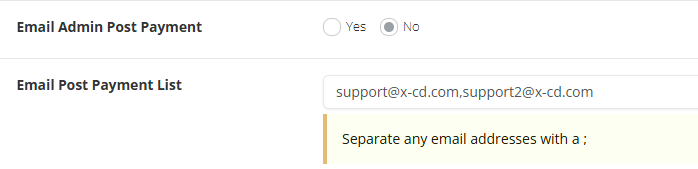 - Set the Email Admin Post Payment : Yes to enable / No to disable