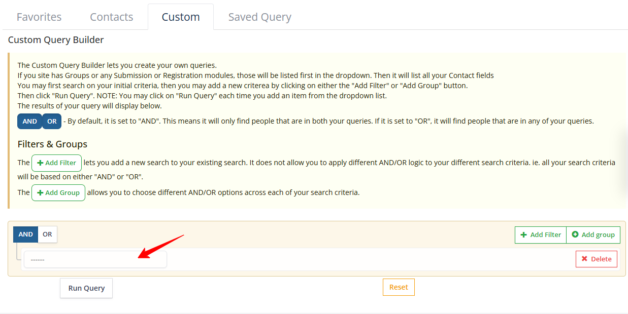 How to use the Contacts Custom Query Builder?
